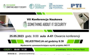 Zaproszenie na VII edycję Konferencji Naukowej Something About IT Security organizowanej przez Zakład Systemów Złożonych, Oddział Podkarpacki PTI oraz Koło Naukowe Something About IT Security.