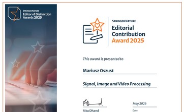 Nagroda "Editorial Contribution Award" dla dr. hab. inż. Mariusza Oszusta,...