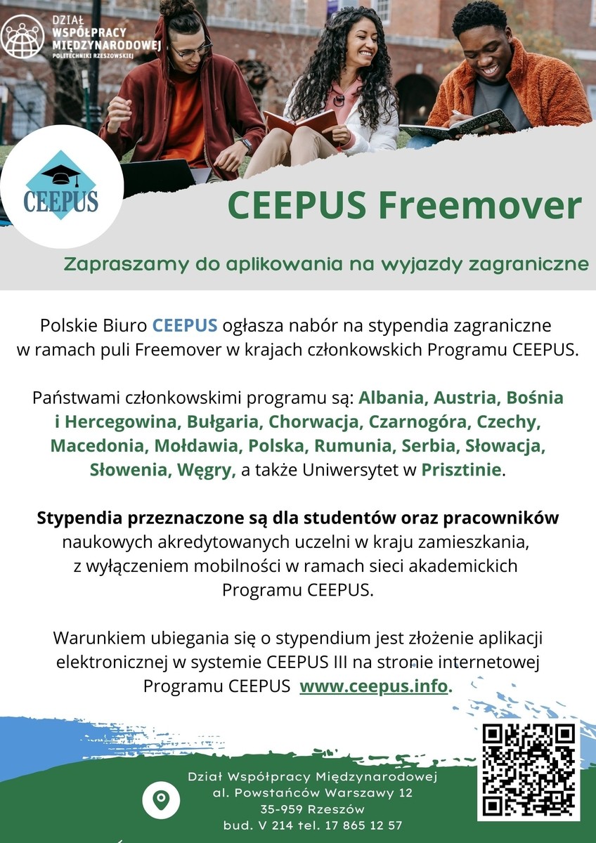 Polskie Biuro CEEPUS ogłasza nabór na stypendia zagraniczne w ramach puli Freemover w krajach członkowskich Programu CEEPUS. Więcej informacji...