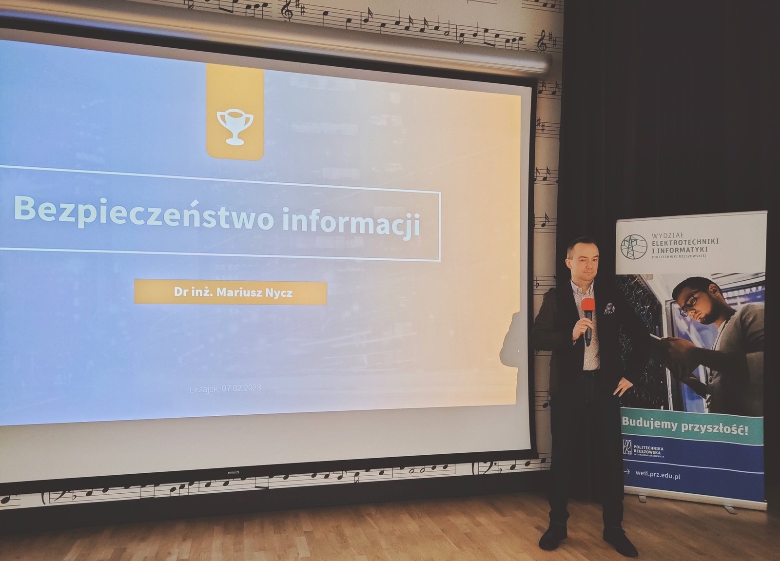 W dniu dzisiejszym tj. 7 lutego 2023 obchodziliśmy kolejną edycję Dnia Bezpiecznego Internetu (DBI). Z tej okazji pracownicy naszego Wydziału przeprowadzili w Zespole Szkół Licealnych im. Bolesława Chrobrego w Leżajsku wykłady dotyczące problematyki bezpiecznego korzystania z sieci Internet i jej zasobów.
