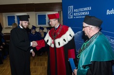 Na zakończenie swojej wypowiedzi Dziekan przytoczył fragment misji Politechniki Rzeszowskiej w zakresie kształcenia: Politechnika Rzeszowska poprzez proces edukacyjny zmierza do wychowania studentów w duchu poszanowania praw człowieka, patriotyzmu, wrażliwości na losy społeczeństwa, szacunku dla państwa i jego obywateli, tolerancji, odpowiedzialności i rzetelności wykonywania swoich obowiązków. Jestem przekonany, że osiągnęliśmy ten cel i jesteście Państwo tego najlepszym dowodem.