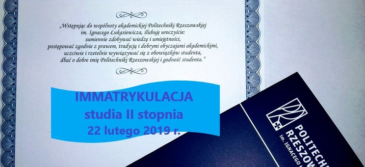 Dnia 22 lutego 2019 r. (piątek) o godz. 10:30 w sali V2 (bud. V, al. Powstańców Warszawy 12) odbędzie się uroczysta immatrykulacja osób przyjętych na pierwszy rok studiów stacjonarnych drugiego stopnia kierunków: