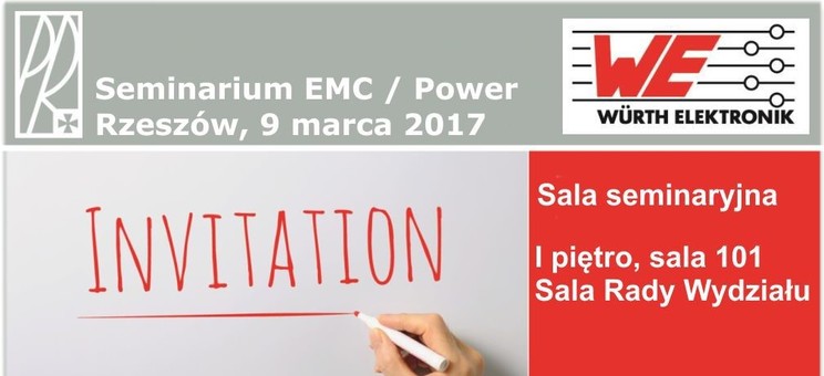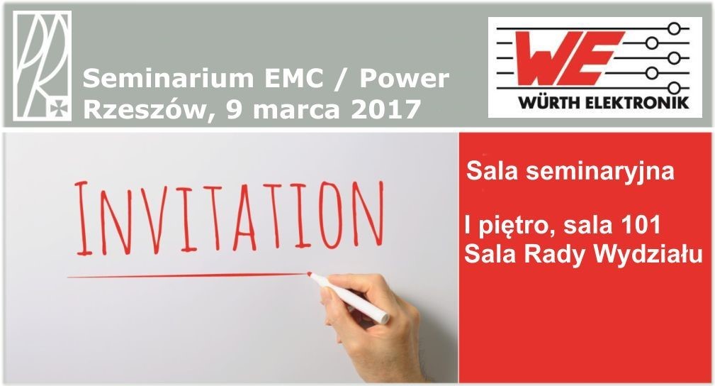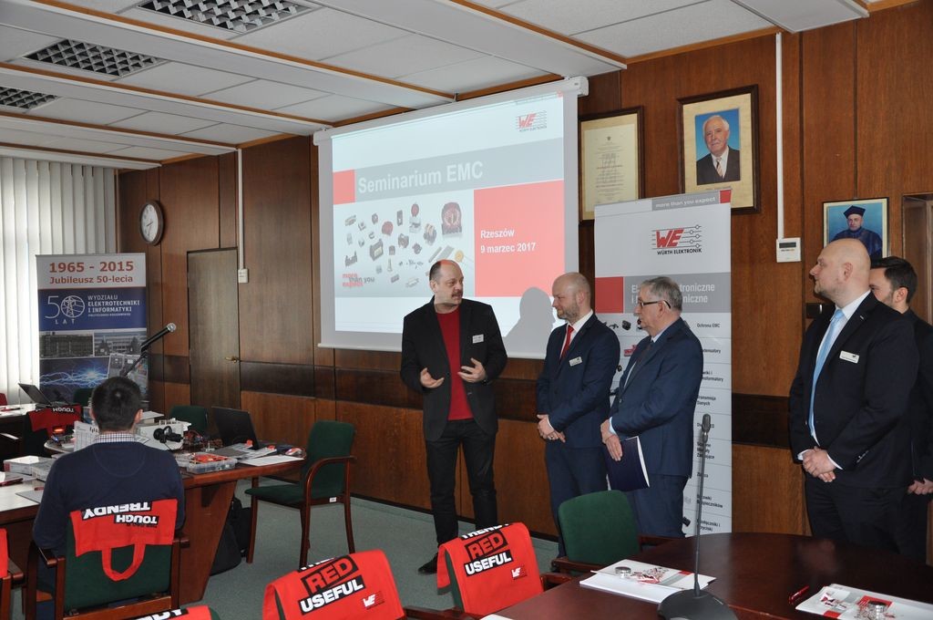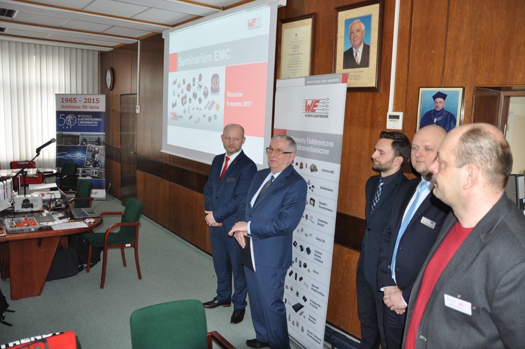 W dniu 9 marca 2017 na Wydziale Elektrotechniki i Informatyki Politechniki Rzeszowskiej w Sali Posiedzeń Rady Wydziału odbyło się seminarium naukowe poświęcone aspektom kompatybilności elektromagnetycznej w projektowaniu innowacyjnych rozwiązań przetwornic impulsowych, zorganizowane przez pracowników Katedry Systemów Elektronicznych i Telekomunikacyjnych oraz firmę Würth Elektronik Polska pod patronatem Dziekana Wydziału Elektrotechniki i Informatyki Prof. dr hab. inż. Kazimierza Buczka oraz Polskiej Sekcji IEEE EMC–S.