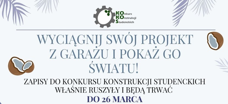 Ruszyły zapisy do VII edycji Konkursu Konstrukcji Studenckich KOKOS, organizowanego przez Niezależne Zrzeszenie Studentów. Swoje projekty można zgłaszać do 26 marca w aż 6 kategoriach: