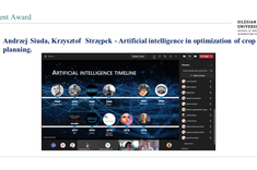 Wydział Elektrotechniki i Informatyki reprezentowali Andrzej Siuda i Krzysztof Strzępek, studenci III roku automatyki i robotyki, którzy wystąpili z prezentacją „Artificial intelligence in optimization of crop planning”. Przedstawili w niej analizę możliwości wykorzystania sztucznej inteligencji do optymalizacji planowania upraw oraz w rolnictwie precyzyjnym zarówno pod kątem technologicznym jak i od strony ekonomii, zarządzania i logistyki.