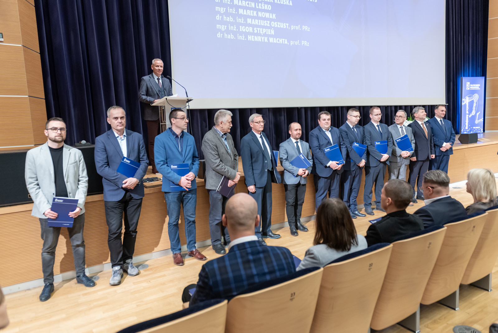 uhonorowania zostali dr inż. Krzysztof Baran, dr inż. Łukasz Ciura, dr inż. Paweł Dymora, mgr inż. Sebastian Hajder, dr inż. Grzegorz Hałdaś, prof. PRz, dr hab. inż. Robert Hanus, prof. PRz, dr hab. inż. Piotr Jankowski-Mihułowicz, prof. PRz, dr inż. Kazimierz Kamuda, dr inż. Dariusz Klepacki, prof. dr hab. inż. Andrzej Kolek, dr hab. inż. Mariusz Korkosz, prof. PRz, mgr inż. Bartosz Kowal, mgr inż. Krystyna Krzywdzińska-Kornak, dr inż. Paweł Kuraś, dr inż. Kazimierz Kuryło, dr hab. inż. Grzegorz Masłowski, prof. PRz, dr inż. Mirosław Mazurek, dr inż. Mariusz Mączka, dr inż. Krzysztof Mleczko, dr hab. inż. Mariusz Oszust, prof. PRz, dr inż. Witold Posiewała, dr inż. Tomasz Rak, dr inż. Dariusz Rzońca, dr inż. Wiesław Sabat, dr inż. Mariusz Skoczylas, dr hab. inż. Dominik Strzałka, prof. PRz, dr inż. Anna Szlachta, prof. PRz, dr hab. inż. Henryk Wachta, prof. PRz, dr hab. inż. Mariusz Węglarski, prof. PRz, dr inż. Jakub Wojturski,