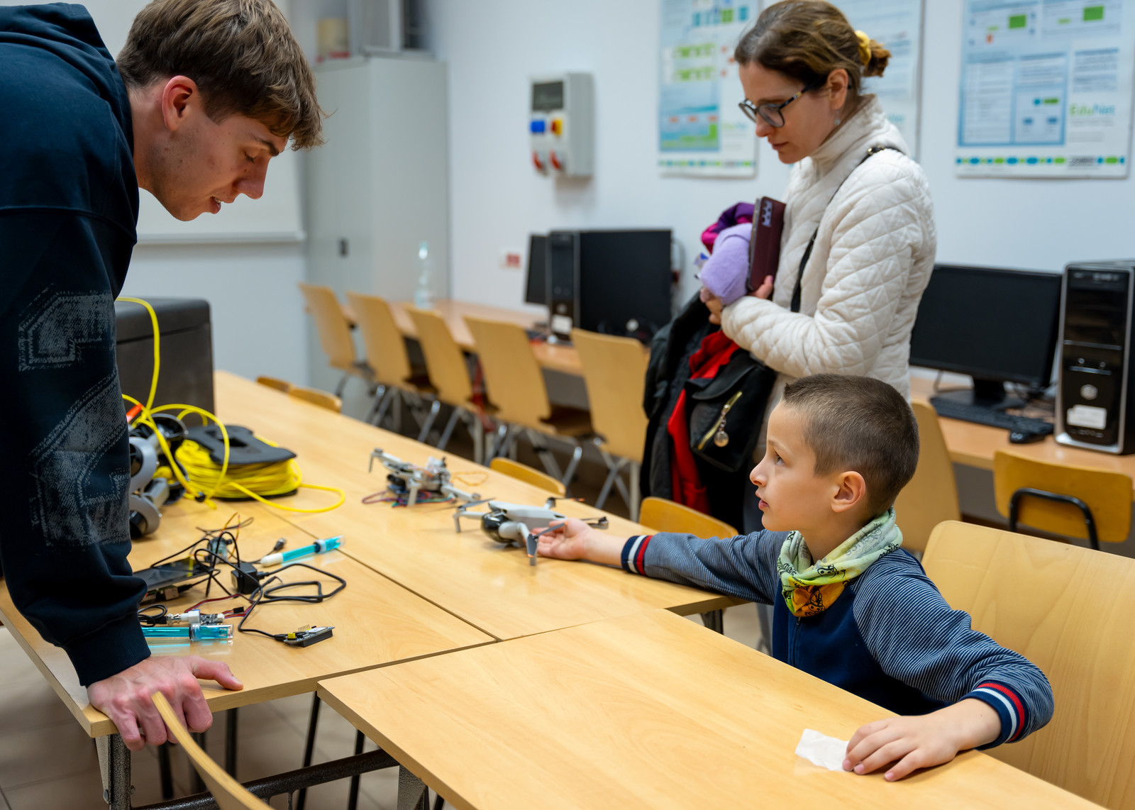 Tegoroczna Noc Nauki na WEiI odnotowała rekordową frekwencję, co jest dowodem na rosnące zainteresowanie inżynierią i informatyką. Oprócz prezentacji badawczych, na zwiedzających czekały również stanowiska i angażujące pokazy przygotowane przez studentów z Kół Naukowych działających przy Wydziale Elektrotechniki i Informatyki. Ich wkład wzbogacił program, oferując uczestnikom możliwość interaktywnego doświadczenia nauki. Swoje osiągnięcia prezentowali studenci KN: