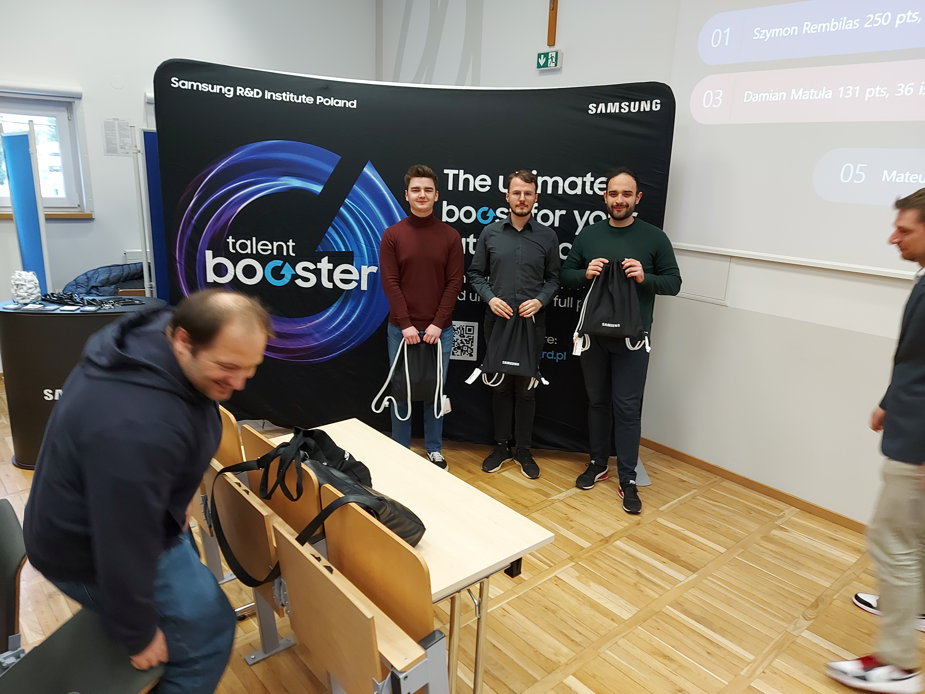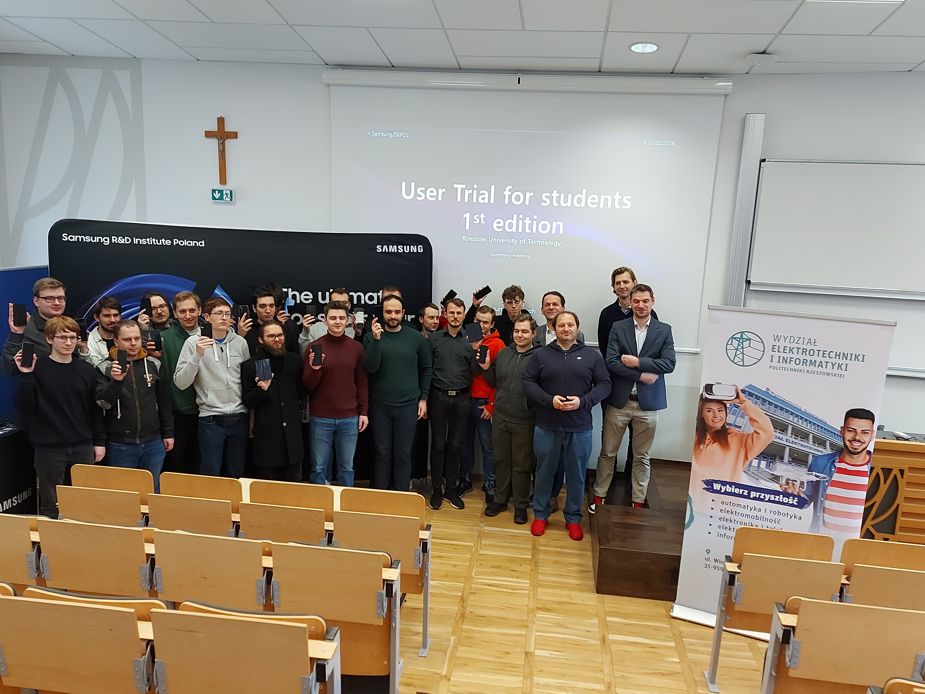 W dniu 22.01.2024 odbył się finał pilotażowego programu "User Trial for Students" zaproponowany przez firmę Samsung dla studentów Wydziału Elektrotechniki i Informatyki. W programie pilotażowym wzięli udział studenci kierunku elektronika i telekomunikacja I i II stopnia. W ramach programu otrzymali oni telefony do testów oraz odbyli szkolenia z podstaw ich testowania. Łącznie do programu zostało zakwalifikowane 22 osoby. Najbardziej aktywnym studentom zaproponowano współpracę z firmą Samsung R&D w formie stażu lub zatrudnienia oraz nagrodzono ich nagrodami rzeczowymi. W dniu 11 marca bieżącego roku rozpocznie się druga edycja programu "User Trial for Students" do którego zaproszeni są studenci II stopnia 3-go semestru kierunków elektronika i telekomunikacja oraz informatyka.