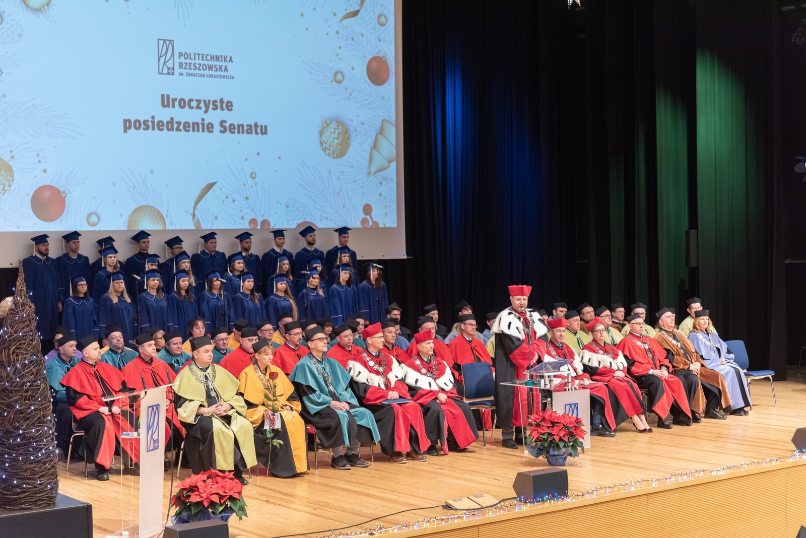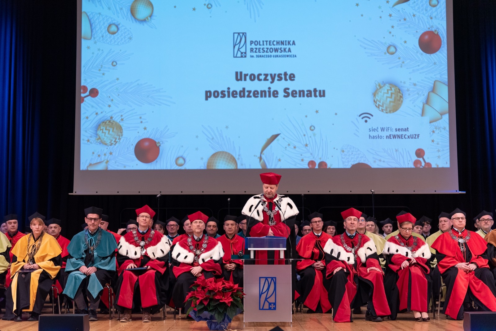 Posiedzeniu Senatu, które odbyło się 15 grudnia w auli Centrum Dydaktyczno-Konferencyjnego i Biblioteczno-Administracyjnego PRz, przewodniczył rektor uczelni prof. dr hab. inż. Piotr Koszelnik. W wydarzeniu wzięli udział również rektorzy Politechniki Rzeszowskiej minionych kadencji prof. Marek Orkisz i prof. Andrzej Sobkowiak, doktor honoris causa Politechniki Rzeszowskiej prof. Leszek Trybus oraz przedstawiciele Rady Uczelni prof. Tomasz Siwowski i prof. Wiktor Bukowski.