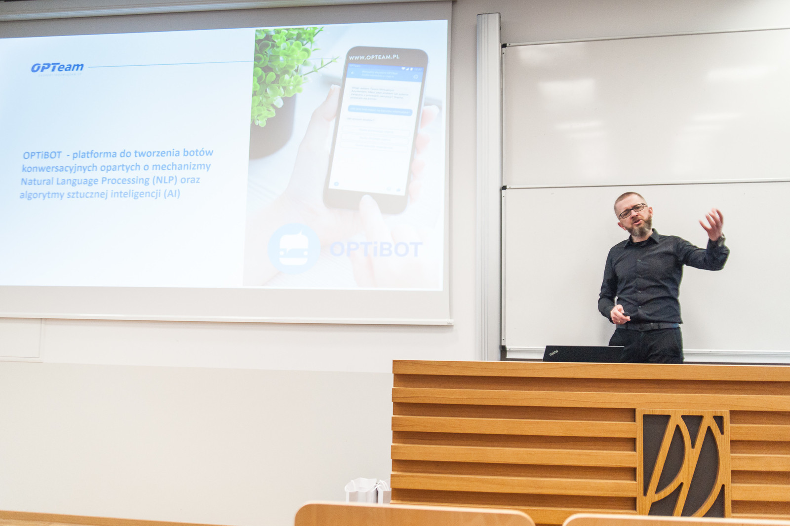 W poniedziałek 25 kwietnia 2022 r na Wydziale Elektrotechniki i Informatyki odbyło się spotkanie przedstawicieli firmy OPTeam S.A. ze studentami Politechniki Rzeszowskiej. W spotkaniu wzięli udział studenci WEiI jak i WMFiS. Uczestnicy dowiedzieli się dużo ciekawych rzeczy związanych z działalnością firmy OPTeam oraz możliwością dalszej współpracy. Przedstawiciele firmy pokazali swoje rozwiązania oraz opowiadali o OPTibocie, wirtualnym dziekanacie, który docelowo na bazie sztucznej inteligencji ma udzielać odpowiedzi zainteresowanym studentom danego wydziału.