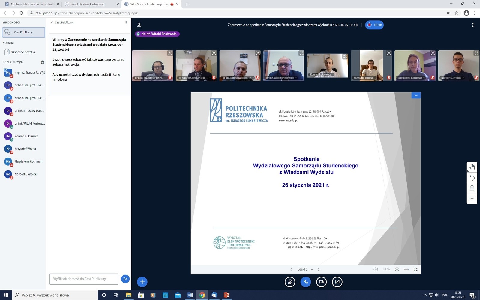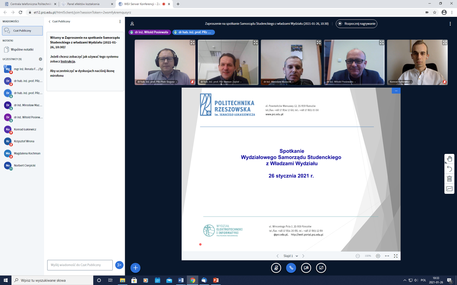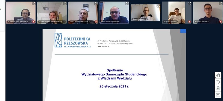 W dniu 26 stycznia 2021 r. odbyło się spotkanie (online) władz dziekańskich Wydziału Elektrotechniki i Informatyki z przedstawicielami wydziałowego Samorządu Studenckiego.