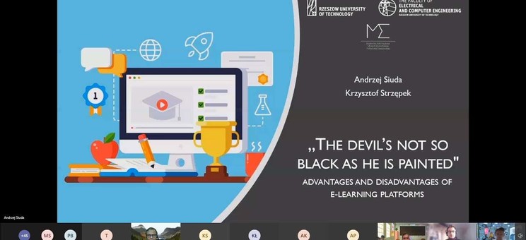 Wydział Elektrotechniki i Informatyki reprezentowali członkowie Studenckiego Koła Naukowego Młodych Ekonomistów Andrzej Siuda i Krzysztof Strzępek, którzy zaprezentowali temat: „The devil’s not so black as he is painted" - advantages and disadvantages of e-learning platforms”.