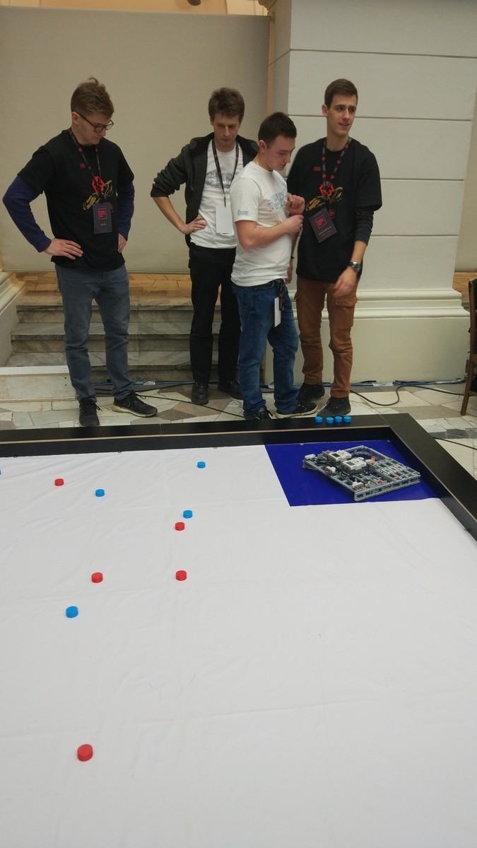 Jedną z konkurencji był Puck Collect, który polegał na tym aby zbudować robota, który na wyznaczonej planszy zbierze jak najwięcej krążków wybranego przez organizatorów koloru w jak najkrótszym czasie jednocześnie pomijając krążki innego koloru, które dawały punkty ujemne. Sześć zebranych krążków odpowiedniego koloru zapewniło naszym studentom II miejsce. W kategorii Humanoid Sprint, robot Autobot nie miał sobie równych i zdeklasował konkurencję zostawiając przeciwników daleko z tyłu. Zadanie polegało na przejściu w określonym czasie jak najdłuższego dystansu w zamkniętym obszarze bez wywracania. W kolejnej kategorii nasz student wystartował z robotem LuckyBot na arenie przeznaczonej dla Line Follower'ów - robotów poruszających się po linii. W Line Follower Enchanced na tor nakładane są przeszkody, które robot musi ominąć. LuckyBot po kilku próbach przejechał całą trasę omijając wszystkie przeszkody i pokonał faworyta prześcigując go o 1 sekundę. Tor Line Follower'a składał się z łagodnych zakrętów, skrzyżowań oraz zakrętów o kącie prostym. Dodatkowo w kategorii Enchanced dodano przeszkody w postaci rampy i kartonów. Nie było to jednak problemem dla LuckyBota, który swoją jazdą zajął I miejsce.