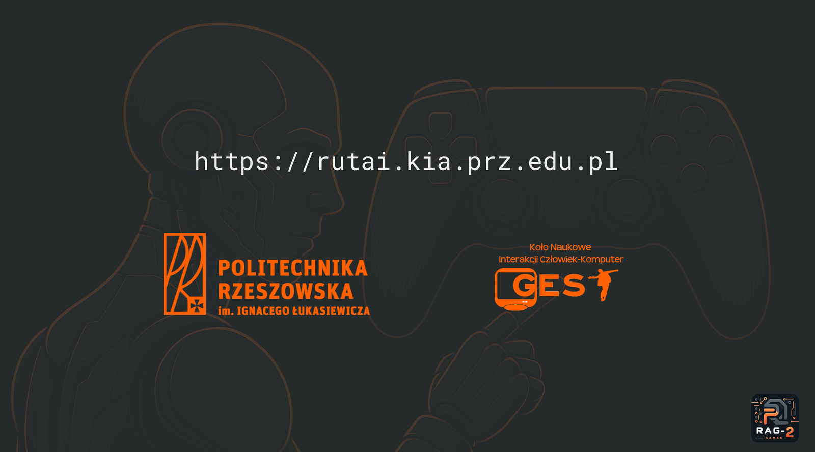 Głównym celem przygotowanej przez studentów Politechniki Rzeszowskiej platformy edukacyjnej Rzeszów University of Technology Games for Artificial Intelligence 2.0 (RAG-2) (link do strony platformy) jest ułatwienie studentom nauki oraz tworzenia własnych algorytmów sztucznej inteligencji. Serwis został zaprojektowany tak, by udostępnić użytkownikom nie tylko szereg gier internetowych różnego rodzaju, lecz także wszystkie ważne dla nich informacje na temat prowadzonej rozgrywki. Dokładny zestaw danych oraz częstotliwość ich zbierania można sparametryzować, a sam proces jest automatyczny. Dane można gromadzić zarówno grając samemu, ze znajomymi, przeciwko zaprojektowanym przez studentów koła GEST agentom sztucznej inteligencji lub podłączając do strony napisane przez siebie algorytmy. W celu ułatwienia nauki twórcy projektu przygotowali szablon kodu programu w języku Python, który pozwala na połączenie się z platformą i wymaga jedynie uzupełnienia o własny algorytm sterujący rozgrywką. Dodatkową pomocą mogą być przygotowane instrukcje tłumaczące krok po kroku jak należy skonfigurować połączenie. Platforma wspiera również różne sposoby sterowania jak te klasyczne tj. klawiatura i myszka, czy bardziej wyrafinowane jak sterowanie przy pomocy gestów dłoni wykonywanych przez gracza rozpoznawanych dzięki kamerze web. Aktualnie studenci prowadzą prace nad dedykowaną aplikacją mobilną pełniąca rolę kontrolera oraz nad integracją obsługi Eyetracker'a pozwalającego na granie przy pomocy ruchu gałek ocznych. Przygotowana w kole naukowym GEST platforma umożliwia również założenie konta na podstawie maila studenckiego lub pracowniczego, co zapewnia dostęp do historii nagranych gier oraz możliwość nieograniczonego korzystania z wbudowanych w platformę botów. Nauczyciele Politechniki Rzeszowskiej mają również możliwość skonfigurowania wirtualnej grupy zajęciowej, dzięki której mogą mieć wgląd w postępy prac dołączonych do niej studentów. Wszystkie osoby chętne przetestować platformę i podzielić się opinią lub sugestiami zachęcamy do kontaktu na maila w stopce strony (kontakt e-mail).