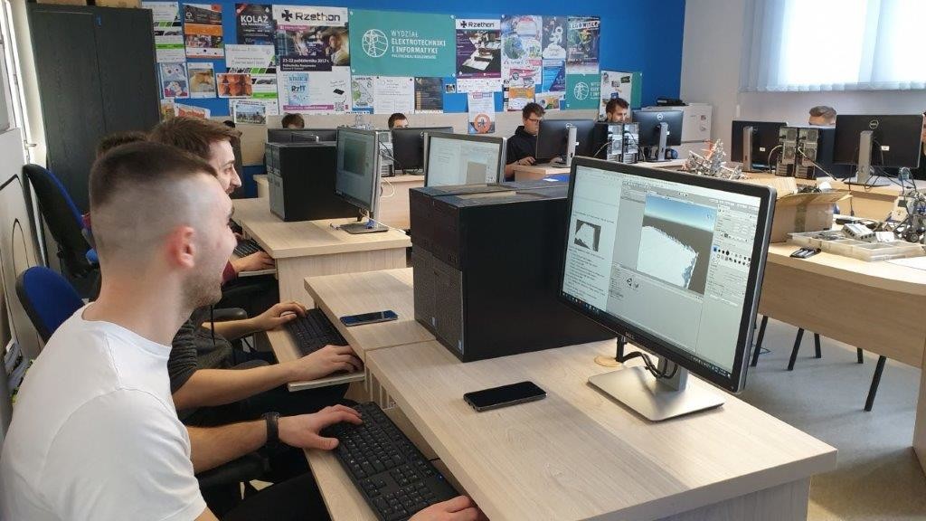 W dniach 17-21 lutego 2020 r. w Zakładzie Systemów Złożonych Wydziału Elektrotechniki i Informatyki odbyło się 5 dniowe szkolenie z zakresu technologii wirtualnej rzeczywistości. Szkolenie było realizowane w ramach międzynarodowego projektu I-TRACE Immersive TRAining for aerospaCE realizowanego przez Wydział Elektrotechniki i Informatyki oraz Wydział Budowy Maszyn i Lotnictwa Politechniki Rzeszowskiej w ramach projektu Erazmus+ pod kierownictwem Pani prof. dr hab. inż. Romany Śliwy. W projekcie I-TRACE poza Politechniką Rzeszowską udział bierze 6 partnerów europejskich, m.in. dostawcy szkoleń zawodowych, uniwersytety, grupy zrzeszające izby handlowe oraz firmy specjalizujące się w wirtualnej rzeczywistości. Zaangażowane kraje to Włochy, Polska, Norwegia i Hiszpania. Zakończenie projektu zaplanowano na 30.10.2020 r. Do szczegółowych celów projektu zaliczyć należy opracowanie szkoleń/kursów z wykorzystaniem technologii VR/AR dla studentów z obszaru lotnictwa (opcjonalne specjalizacje), jak i pracowników zainteresowanych firm lotniczych w zakresie inspekcji: samolotów, linii produkcyjnych i parku maszynowego oraz konstruowania i eksploatacji maszyn, ich komponentów, itp.