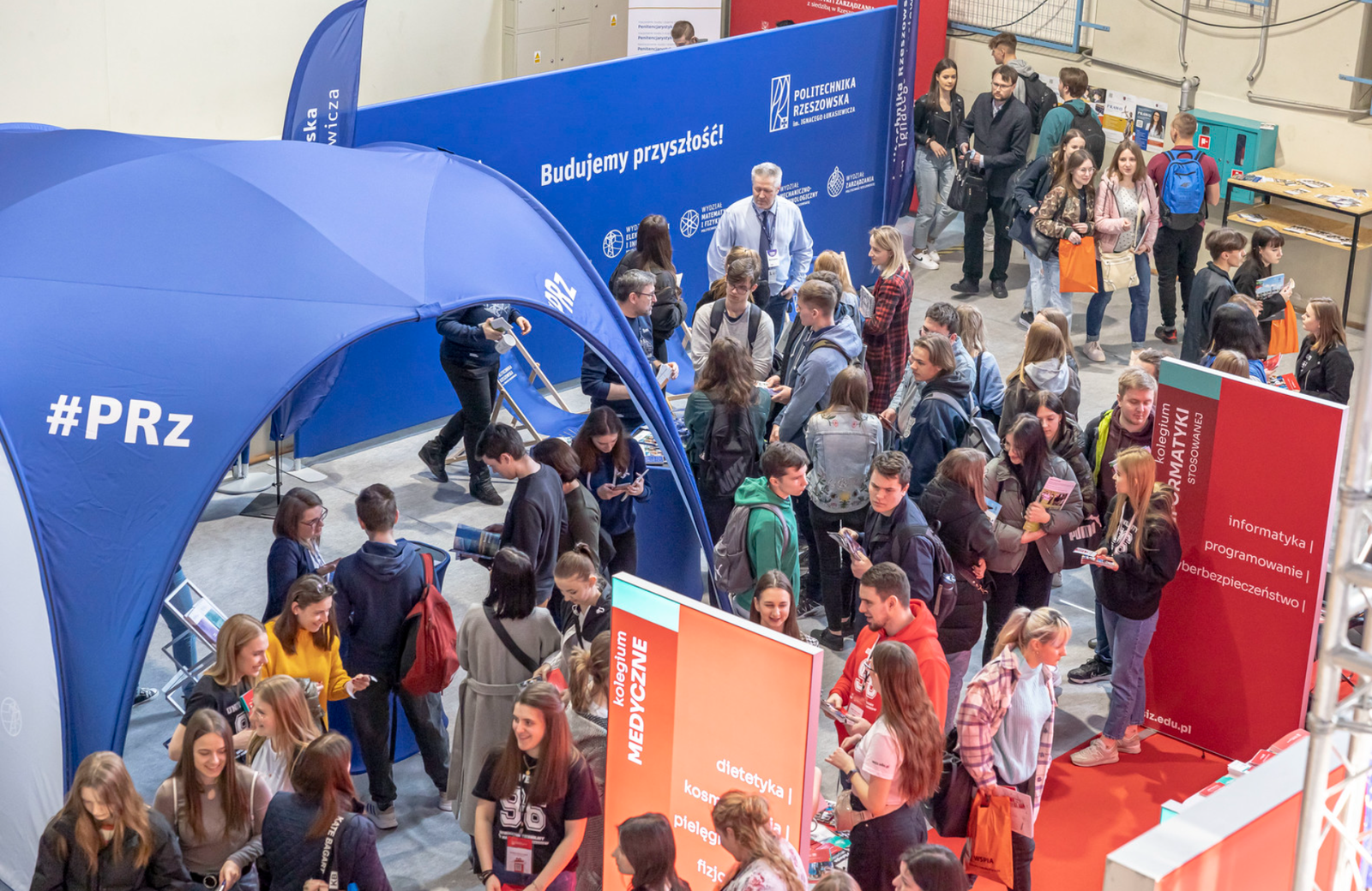 Dla Politechniki Rzeszowskiej była to doskonała okazja zaprezentowania oferty kształcenia uczniom szkół średnich. Pracownicy Biura Promocji przygotowali atrakcyjne stoisko, na którym uczniowie szkół średnich mogli dowiedzieć się, jakie warunki należy spełnić, by dostać się na poszczególne kierunki studiów, jakiej wysokości są stypendia i ile kosztuje semestr na studiach niestacjonarnych. Zainteresowanie ofertą naszej uczelni było duże. W całym wydarzeniu aktywny udział brali również przedstawiciele Wydziału Elektrotechniki i Informatyki, prezentując bogatą ofertę dydaktyczno naukową Wydziału, w tym liczne kierunki kształcenia i specjalności, jak również nowoczesne wyposażenie laboratoriów WEiI. W skład delegacji Wydziału weszli następujący pracownicy: