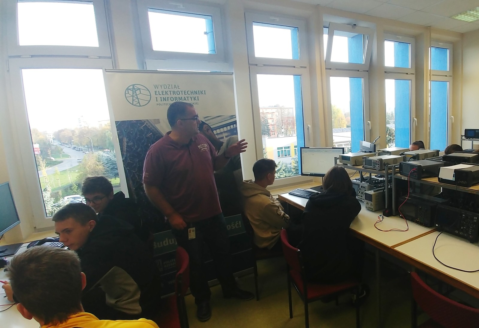 W dniu 28 października 2022 w ramach porozumienia pomiędzy Zespołem Szkół Energetycznych im. W. Sikorskiego w Rzeszowie a Politechniką Rzeszowską odbyły się warsztaty programowania przyrządów pomiarowych. W zajęciach uczestniczyli uczniowie klas drugich kształcący się w zawodzie „Technik urządzeń i systemów energetyki odnawialnej” oraz uczniowie klas trzecich kształcący się w zawodzie „Technik elektronik”. Podczas warsztatów uczniowie mieli możliwość teoretycznego zapoznania się z problematyką programowej obsługi przyrządów pomiarowych i praktycznego zastosowania nabytej wiedzy m. in. do wstępnej konfiguracji multimetru, wykonania pomiarów parametrów napięcia zmiennego, statystycznego opracowania serii wyników pomiarów rezystancji oraz do rejestracji i analizy parametrów napięcia sieciowego.
