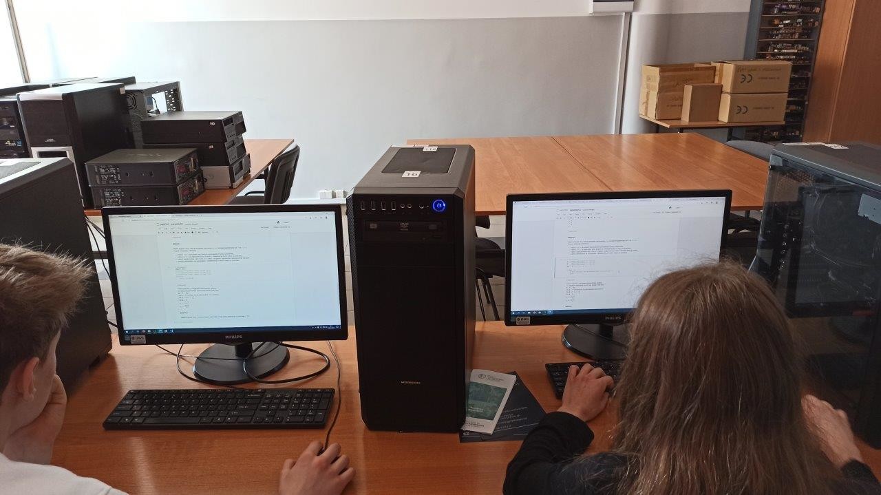 W dniu 8.04.2022 r. w Zespole Szkół Elektronicznych, w ramach porozumienia podpisanego z Politechniką Rzeszowską, odbyły się warsztaty programowania w języku Python. Warsztaty poprowadziła mgr inż. Alicja Gerka - pracownica Zakładu Systemów Złożonych WEiI i absolwentka ZSE.