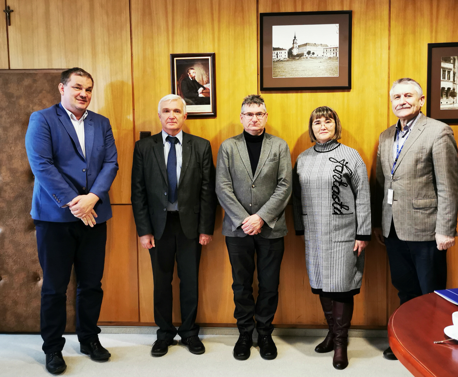 Goście z Charkowa spotkali się również z dr. hab. inż. Mariuszem Korkoszem, prof. PRz Dziekanem WEiI oraz z dr. hab. inż. Damianem Mazurem, prof. PRz Prodziekanem ds. nauki i rozwoju. W czasie spotkania Goście zapoznali się z historią Wydziału, kierunkami studiów, badaniami naukowymi, kształceniem kadry naukowej, działalnością publikacyjną na WEiI, zostały omówione różne problemy kształcenia studentów na uczelniach technicznych, a także uzyskali informację dotyczącą realizacji współpracy międzynarodowej pomiędzy uczelniami technicznymi z Polski i Ukrainy.