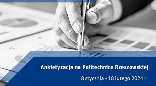 Zgodnie z Zarządzeniem nr 5/2021 Rektora Politechniki Rzeszowskiej im. Ignacego Łukasiewicza w sprawie aktualizacji zasad i trybu przeprowadzania ankietyzacji i hospitacji zajęć dydaktycznych oraz Zarządzeniem nr 26/2023 Rektora Politechniki Rzeszowskiej im. Ignacego Łukasiewicza zmieniającym Zarządzenie nr 5/2021, w porozumieniu z Samorządem Studenckim oraz Samorządem Doktorantów został ustalony termin udostępniania formularzy ankiet w systemie USOS-web w semestrze zimowym roku akademickiego 2023/2024 w okresie od dnia 8 stycznia 2024 r. do dnia 18 lutego 2024 r.