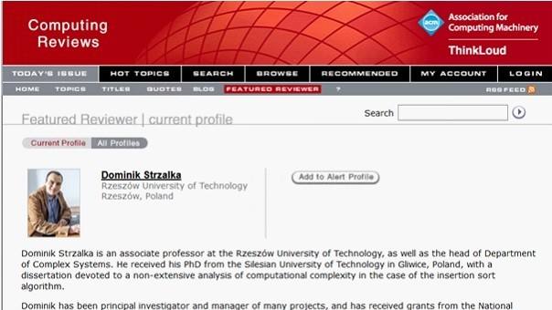 Wyróżnienie od Computing Reviews dla dr. inż. Dominika Strzałki