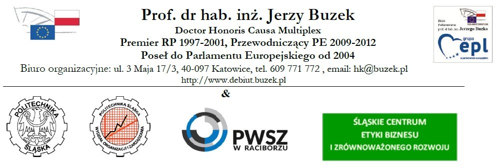 Dwunastą edycję projektu organizują: biura prof. dr hab. inż. Jerzego Buzka - Posła do Parlamentu Europejskiego, Wydział Organizacji i Zarządzania Politechniki Śląskiej, Instytut Studiów Społecznych Państwowej Wyższej Szkoły Zawodowej w Raciborzu, Śląskie Centrum Etyki Biznesu i Zrównoważonego Rozwoju.