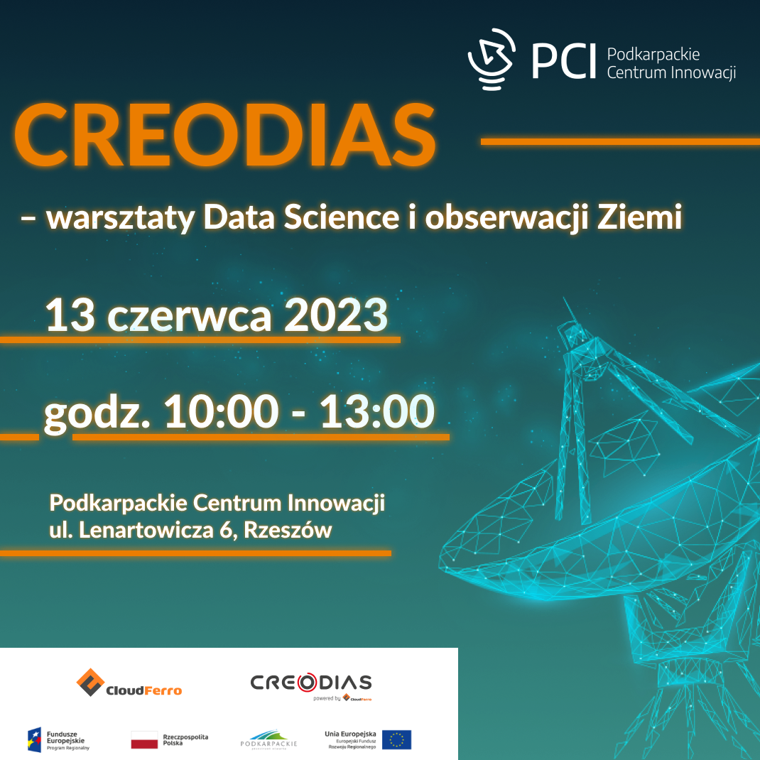 13 czerwca w Podkarpackim Centrum Innowacji organizowane są DARMOWE warsztaty Creodias z Data Science i obserwacji Ziemi. Kierowane są one do osób zainteresowanych zagadnieniami związanymi z przechowywaniem i przetwarzaniem dużych zbiorów danych, chcących poznać podstawy EODATA i nauczyć się korzystać ze środowiska chmurowego. Warsztaty poprowadzą eksperci z CloudFerro.